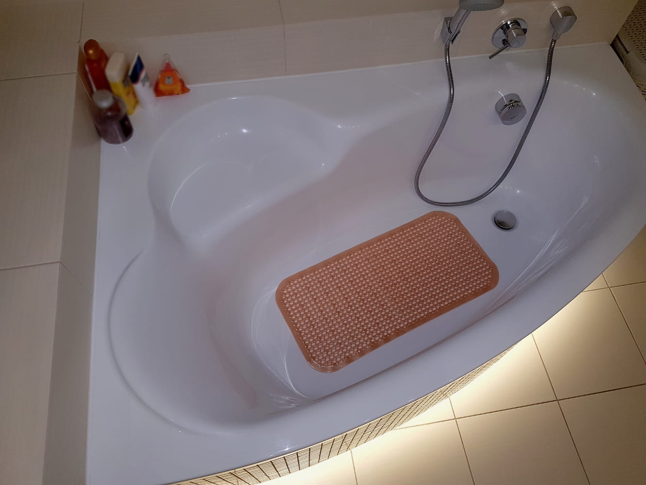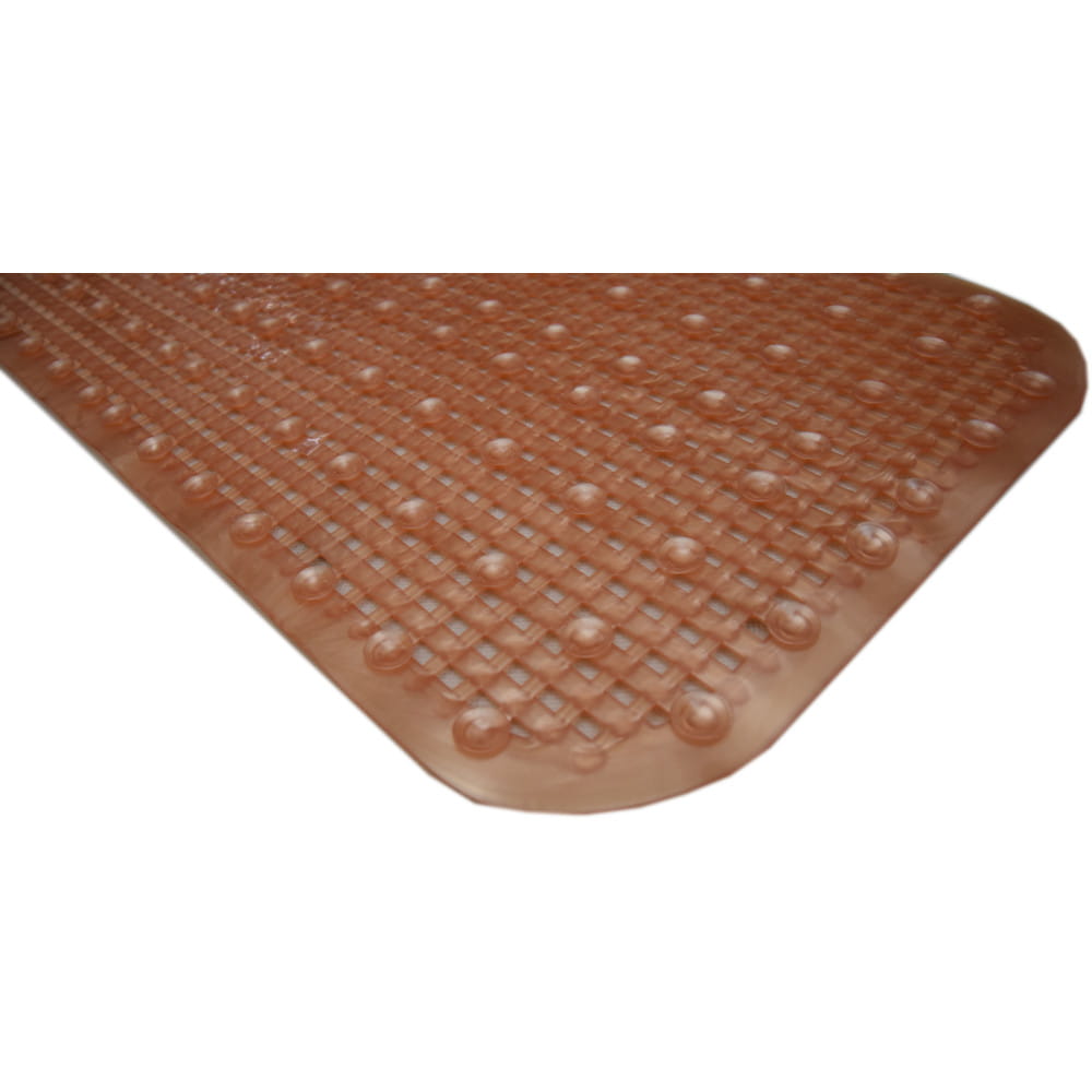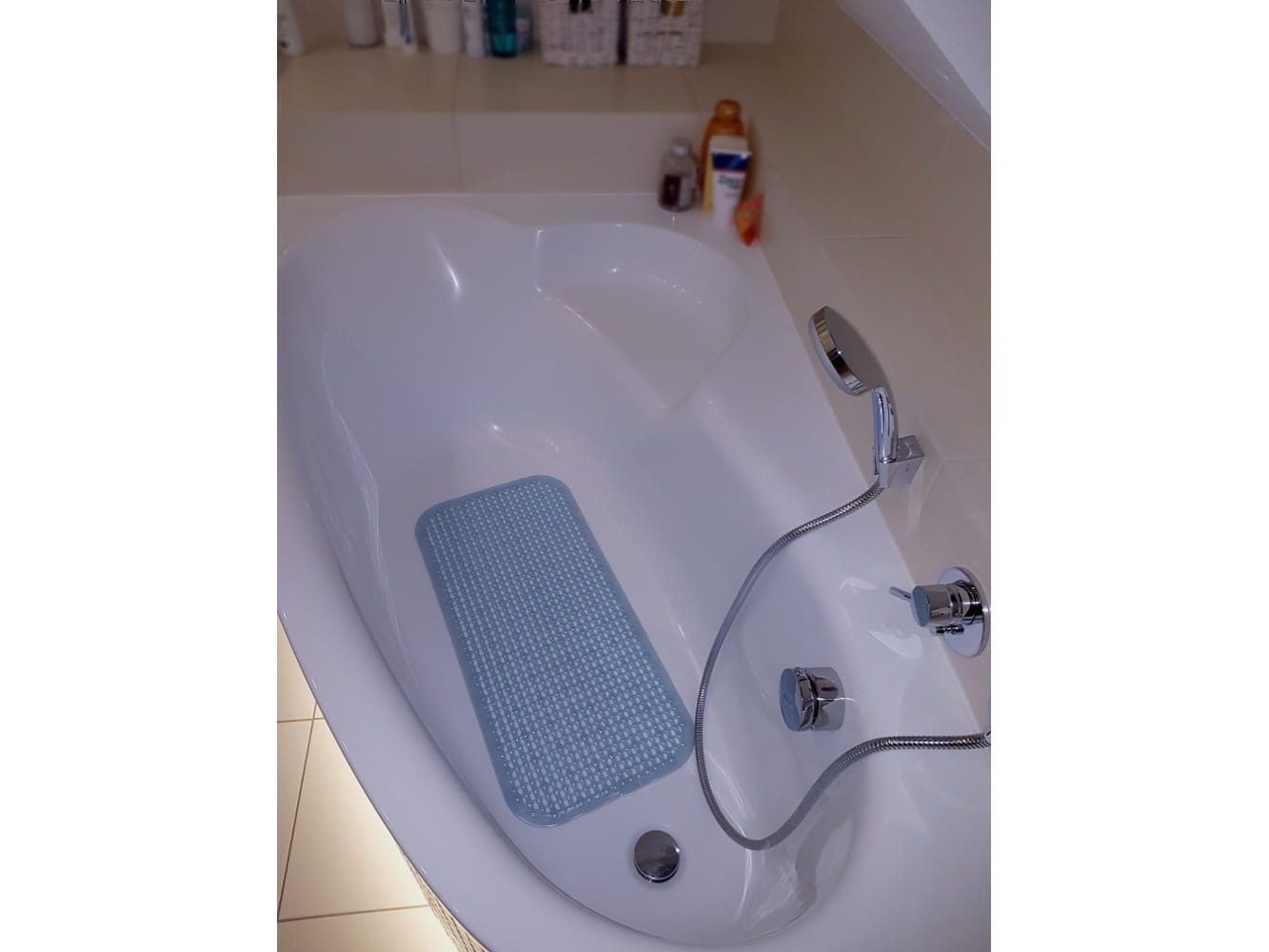 Wyposażona w przyssawki, umożliwiające stałe przytwierdzenie do podłoża. Przez to mata staje się bezpieczna w użytkowaniu.