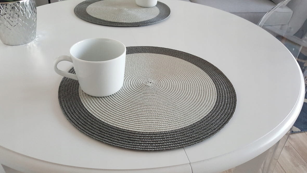 Efektowna i elegancka mata stołowa, wykonana z tworzywa sztucznego.