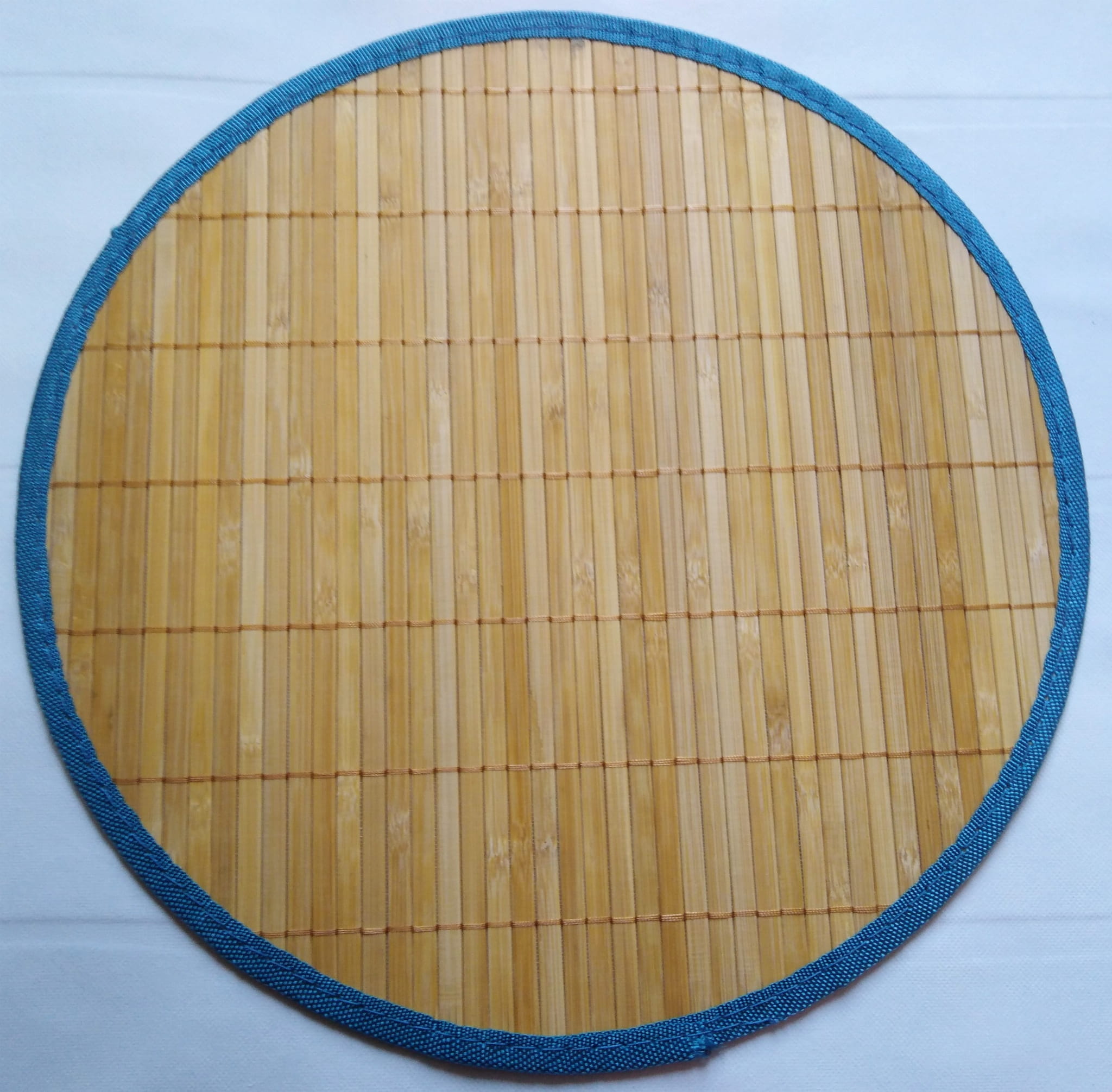Mata bambusowa z gumowym spodem okrągła- mata wykonana z bambusa, wykończona lamówką z materiału, spód pokryty gumą. Mata jest bardzo estetyczna i wytrzymała. Różne wzory.
