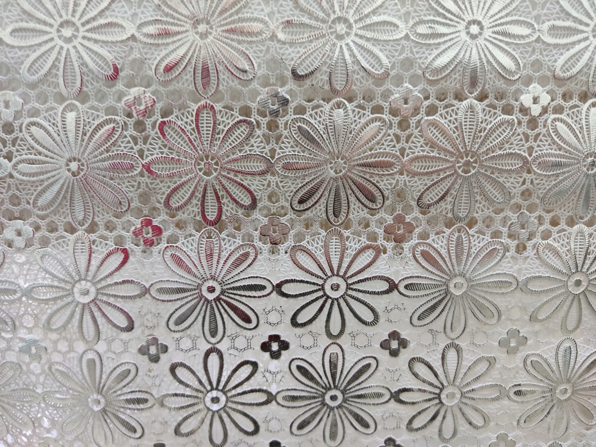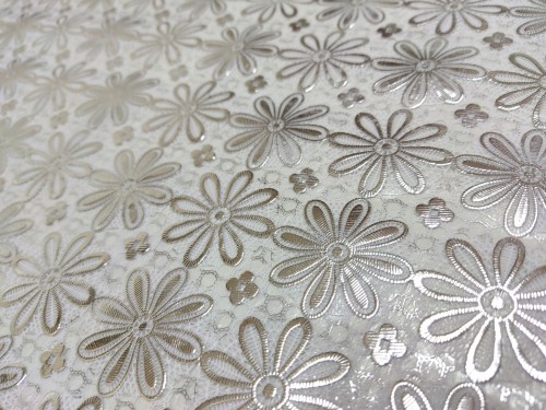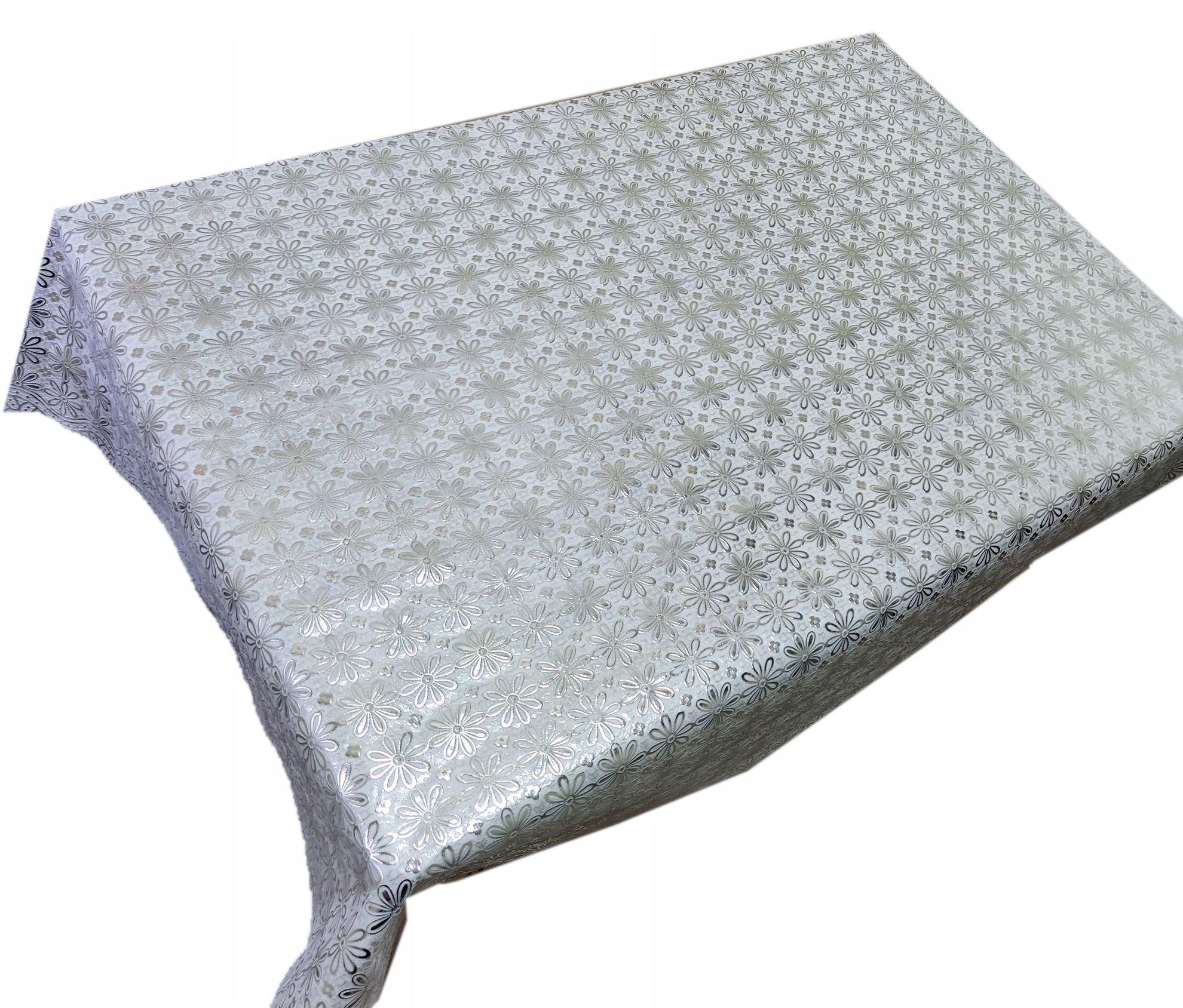 Ładny ,gruby, wysokiej jakości obrus winylowy, strukturą przypominający obrus koronkowy.