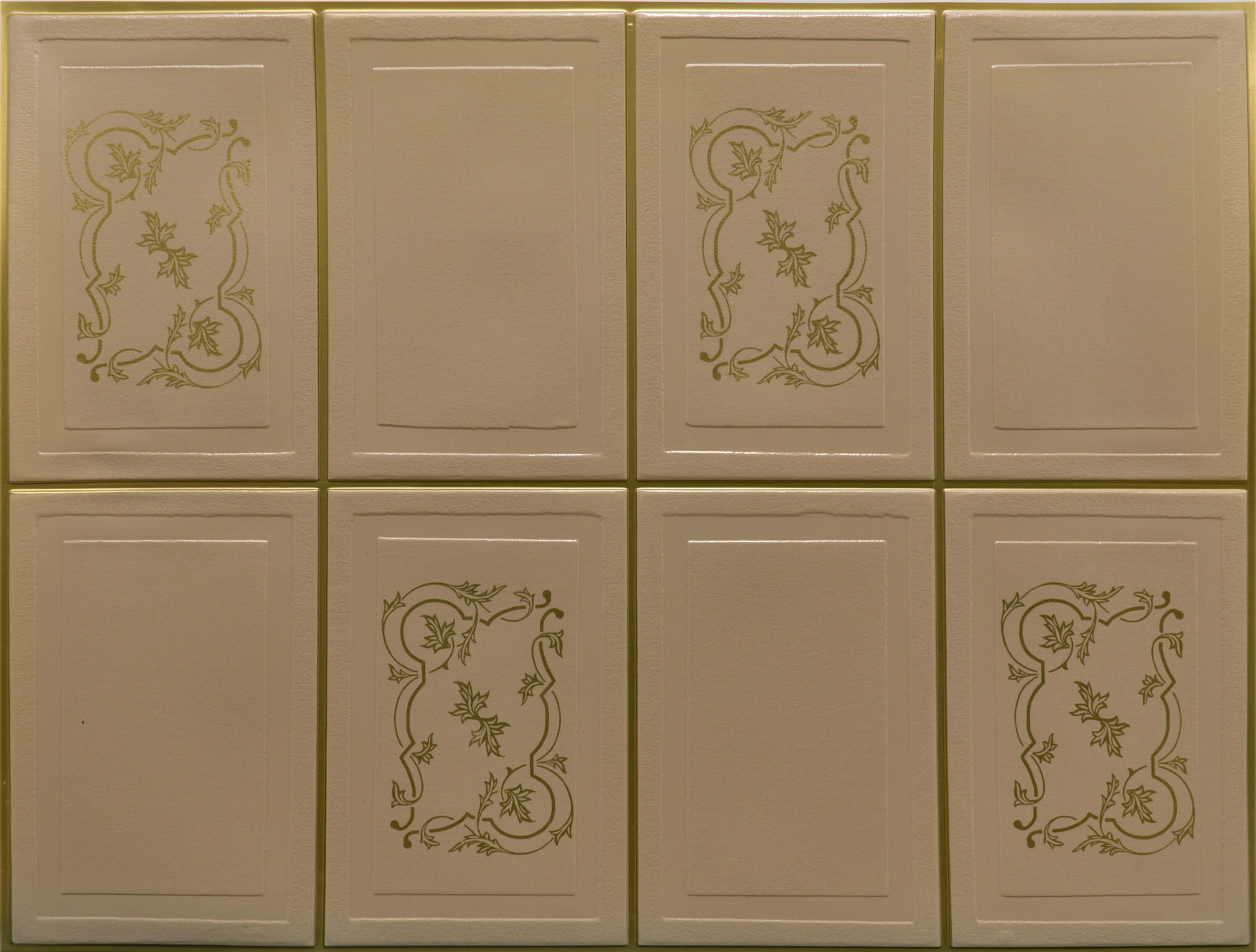 Okładzina Ścienna - OS26-K02-F01- BEŻOWA FOLIA , FUGA ZŁOTA Okładzina ścienna marki Dowika Home Line wykonana jest z wysokiej jakości folii PCV formowanej próżniowo, bogato zdobionej w różnokolorowe wzory i fugi. Zapewnia łatwość użytkowania i konserwacji.