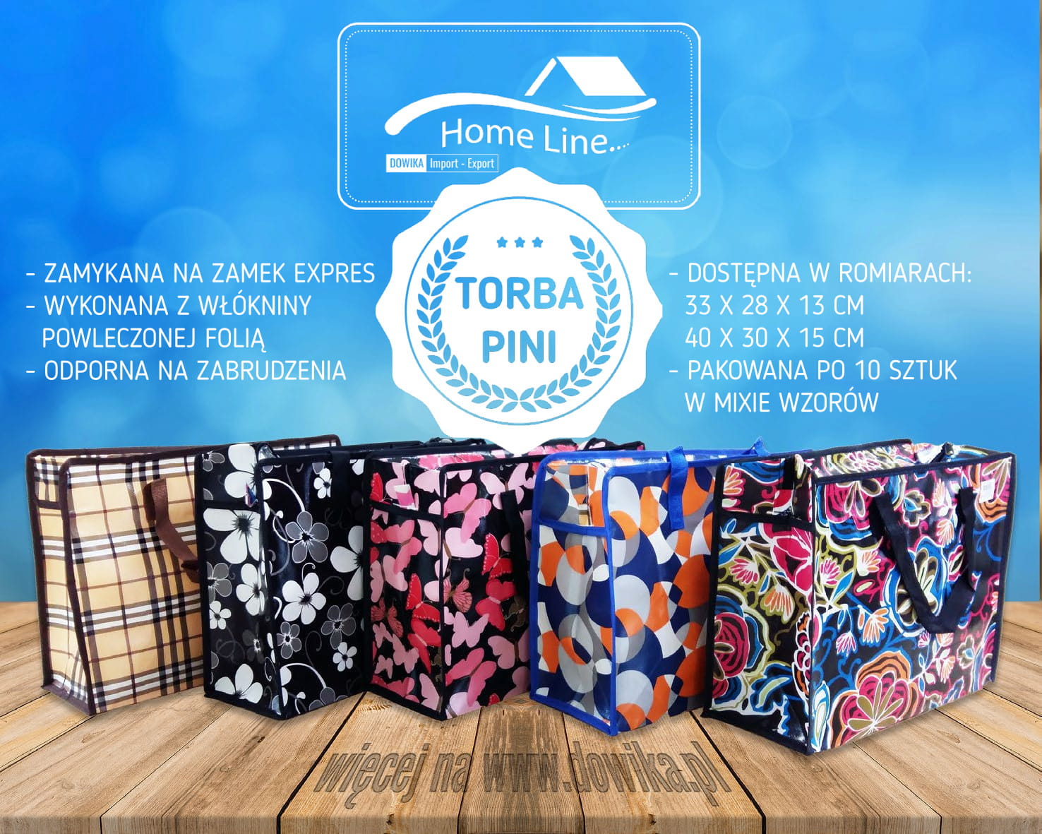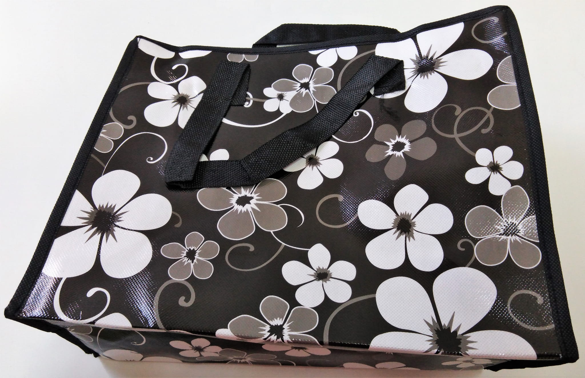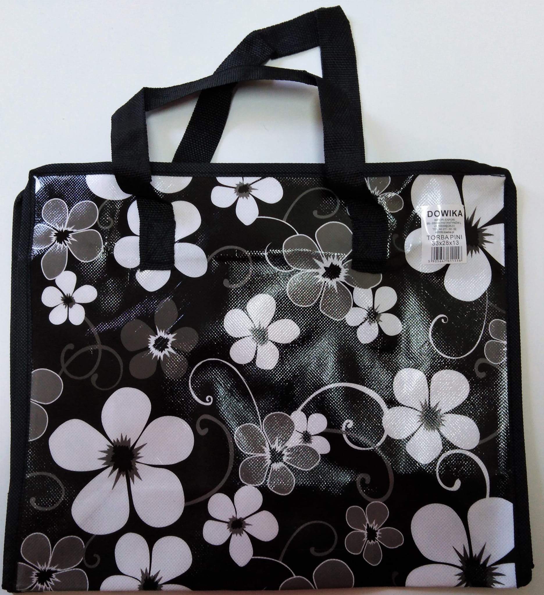 Praktyczna torba na zakupy, z mocnego tworzywa, nieprzemakalna, w wielu modnych,kolorowych wzorach. Bardzo pojemna, zamykana na ekspres, wykonana z włókniny powlekanej folią,wyjątkowo mocna oraz odporna na zabrudzenia .