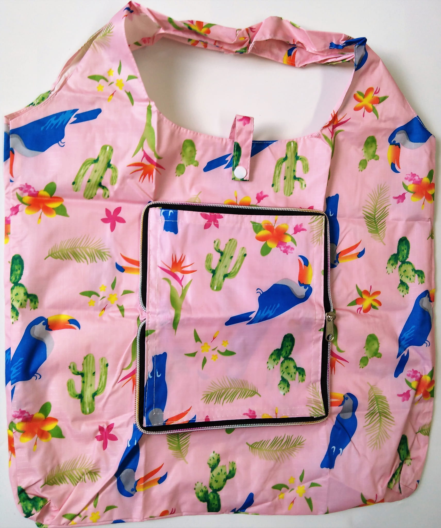 Praktyczna torba na zakupy, z mocnego nylonu, nieprzemakalna, w wielu modnych,kolorowych wzorach.