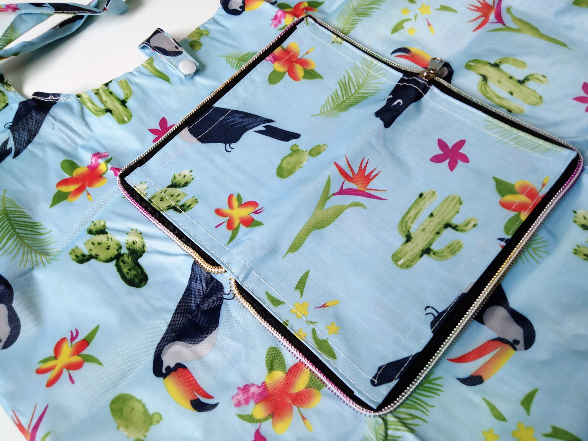 Praktyczna torba na zakupy, z mocnego nylonu, nieprzemakalna, w wielu modnych,kolorowych wzorach.
