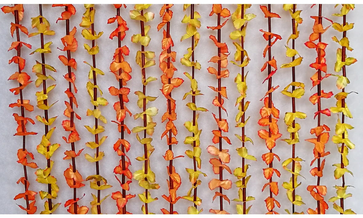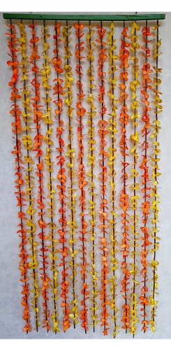 Zasłony drzwiowe Bambus Liść wykonane z elementów bambusowych pomiędzy które wplecione są imitacje liści wykonanych z tkaniny poliestrowej ,oryginalny i niespotykany wygląd wyróżnia je na tle innych zasłon drzwiowych.