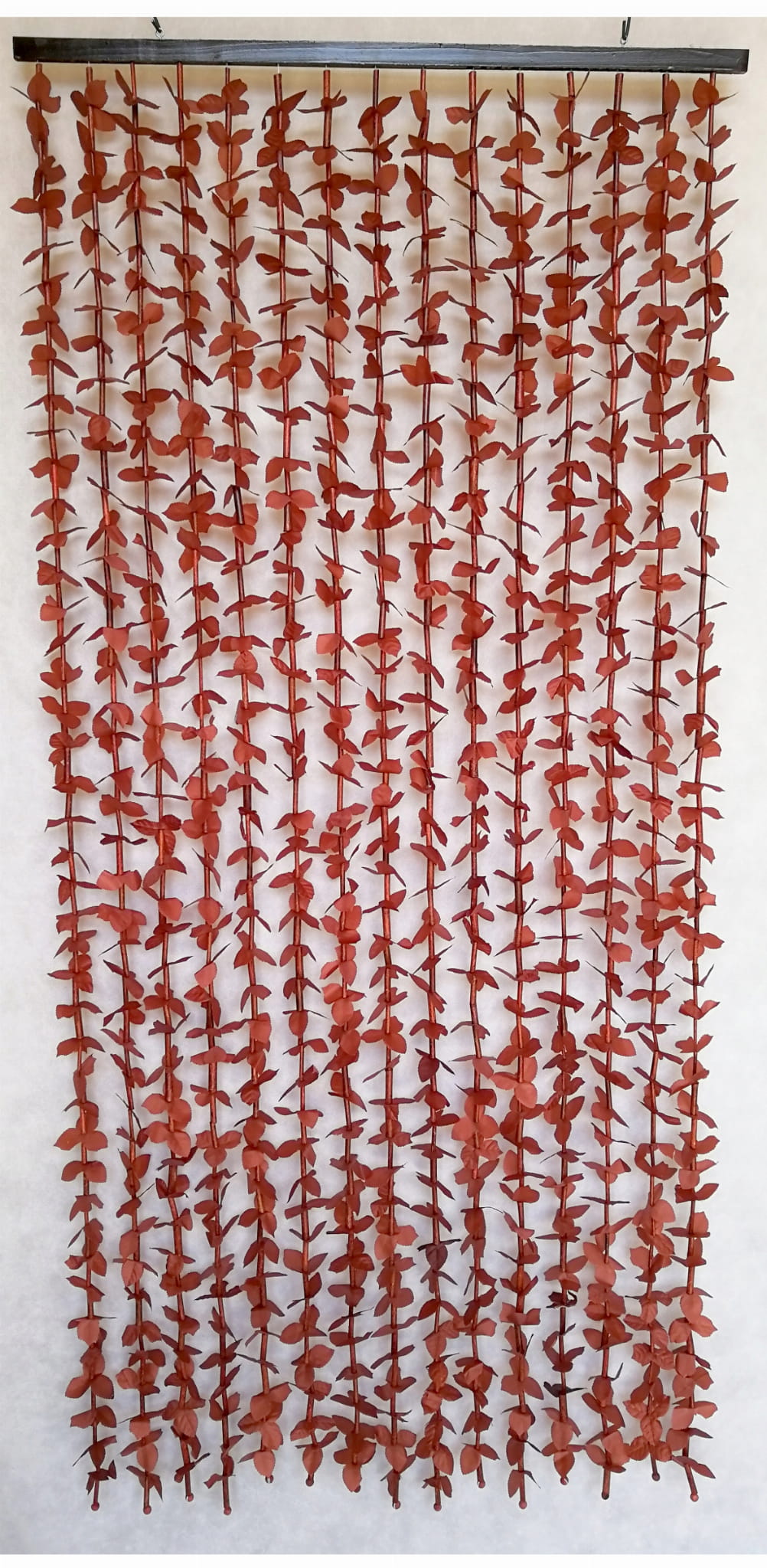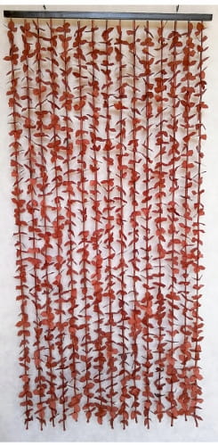 Zasłony drzwiowe Bambus Liść wykonane z elementów bambusowych pomiędzy które wplecione są imitacje liści wykonanych z tkaniny poliestrowej ,oryginalny i niespotykany wygląd wyróżnia je na tle innych zasłon drzwiowych.