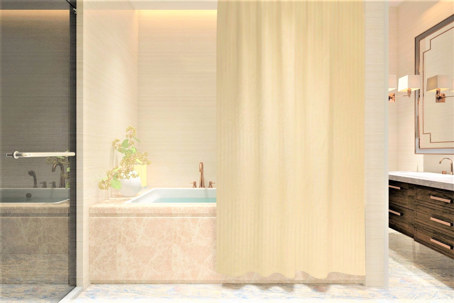 Zasłona prysznicowa ,mocna ,solidna, wykonana z grubego poliestru, W wielu modnych kolorach i wzorach.